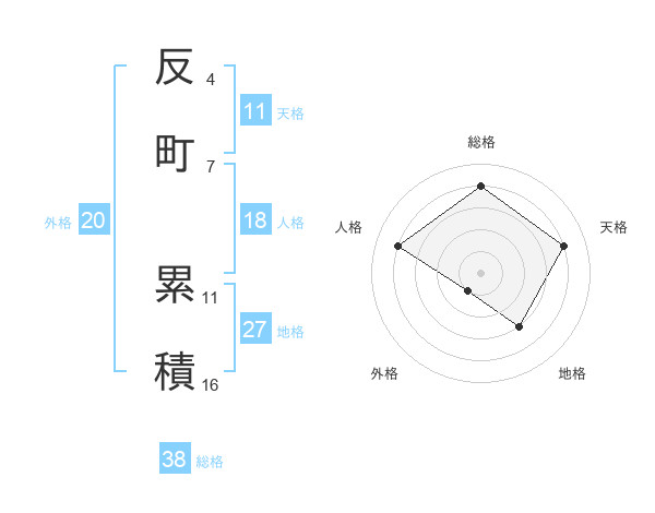 反町 累積さんの総格は38画の4点!
