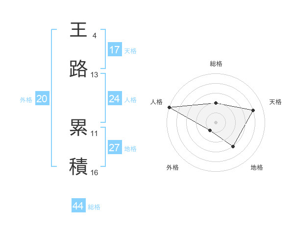 王路 累積さんの総格は44画の2点!