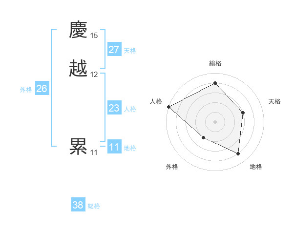 慶越 累さんの外格は26画の2点!