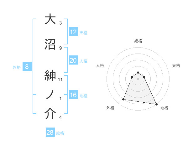 大沼 紳ノ介さんを姓名の画数から五運を鑑定