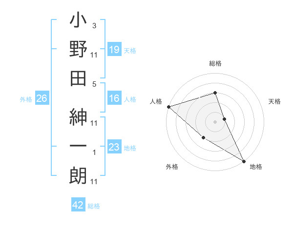小野田 紳一朗さんを姓名の画数から五運を鑑定