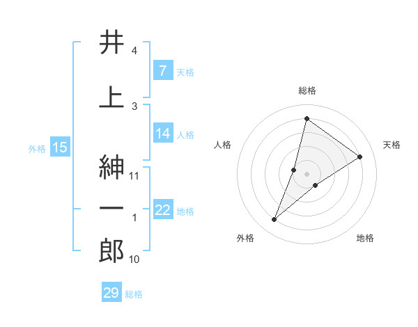 井上 紳一郎さんを姓名の画数から五運を鑑定