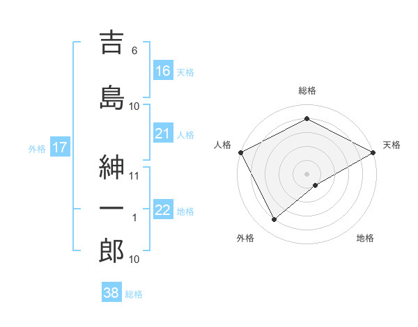吉島 紳一郎さんの天格は16画の5点!