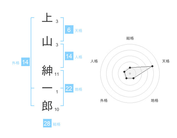 上山 紳一郎さんを姓名の画数から五運を鑑定
