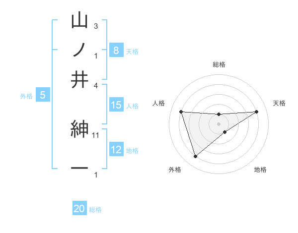山ノ井 紳一さんを姓名の画数から五運を鑑定