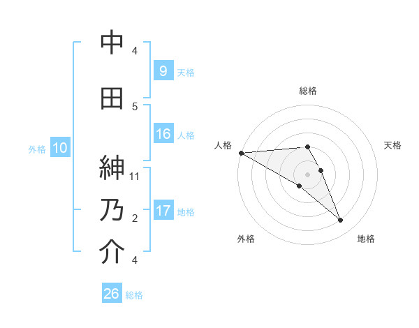 中田 紳乃介さんを姓名の画数から五運を鑑定