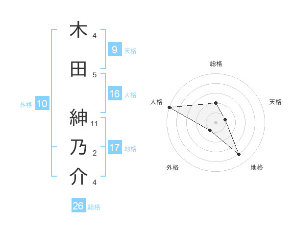 木田 紳乃介さんを姓名の画数から五運を鑑定