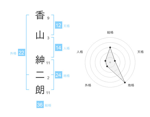 香山 紳二朗さんの地格は24画の5点!