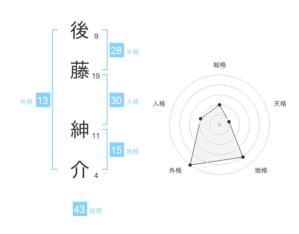 後藤 紳介さんの外格は13画の5点!
