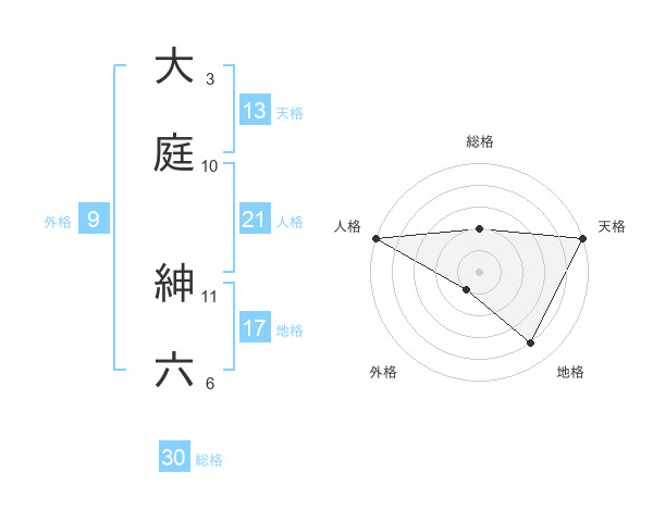 大庭 紳六さんを姓名の画数から五運を鑑定