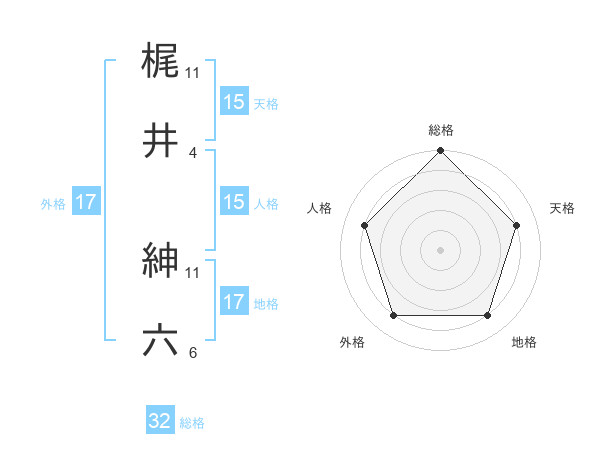 梶井 紳六さんを姓名の画数から五運を鑑定