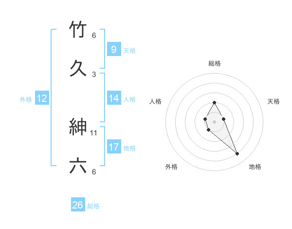 竹久 紳六さんを姓名の画数から五運を鑑定