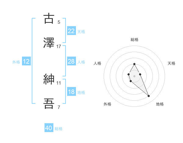 古澤 紳吾さんを姓名の画数から五運を鑑定