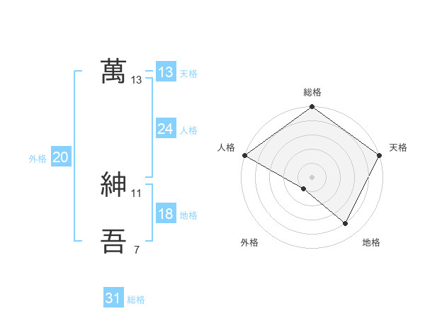 萬 紳吾さんを姓名の画数から五運を鑑定