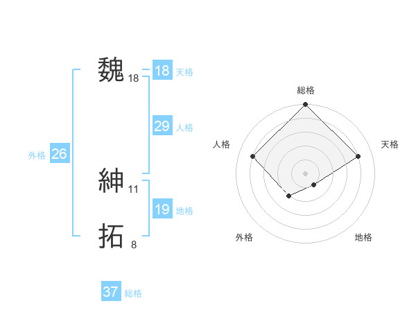 魏 紳拓さんを姓名の画数から五運を鑑定