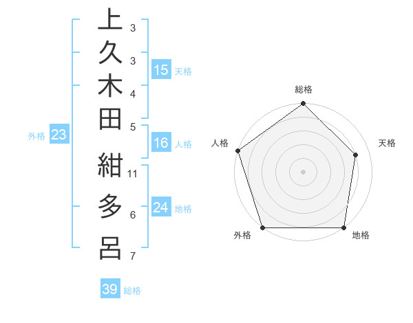 上久木田 紺多呂さんを姓名の画数から五運を鑑定