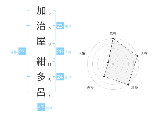 加治屋 紺多呂さんを姓名の画数から五運を鑑定