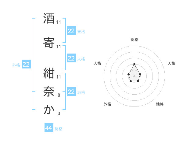 酒寄 紺奈かさんの総格は44画の2点!