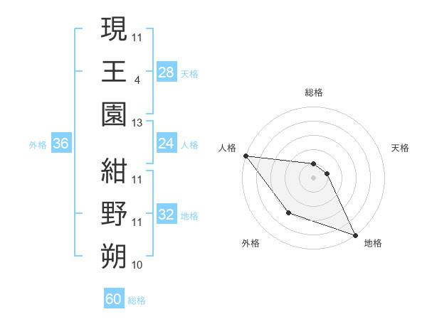 現王園 紺野朔さんの総格は60画の1点!
