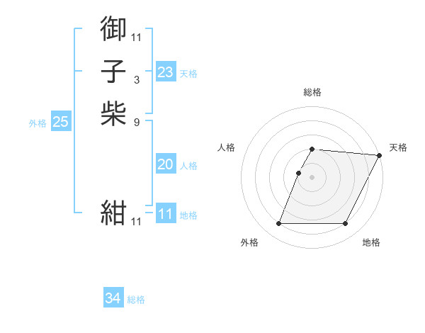 御子柴 紺さんを姓名の画数から五運を鑑定