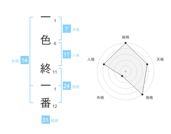 一色 終一番さんの総格は31画の5点!