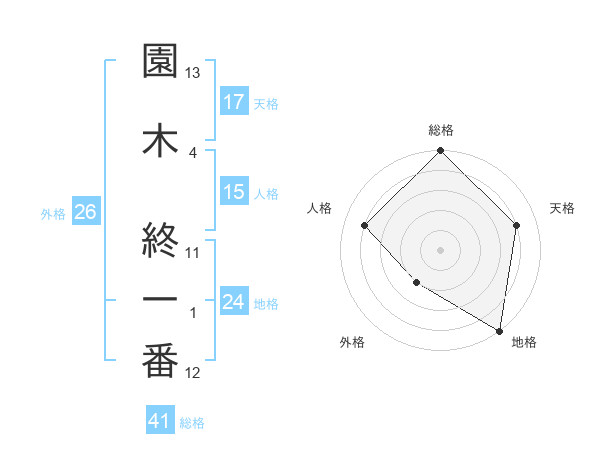 園木 終一番さんの天格は17画の4点!