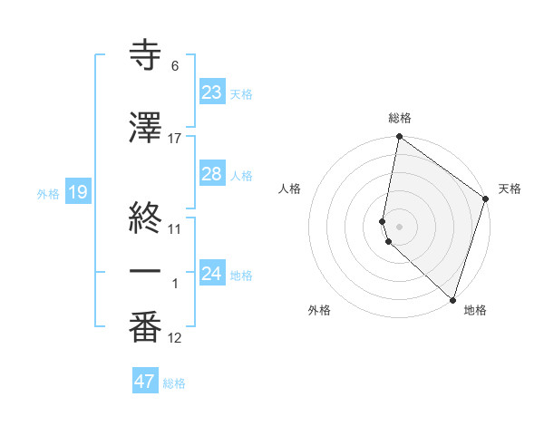 寺澤 終一番さんを姓名の画数から五運を鑑定