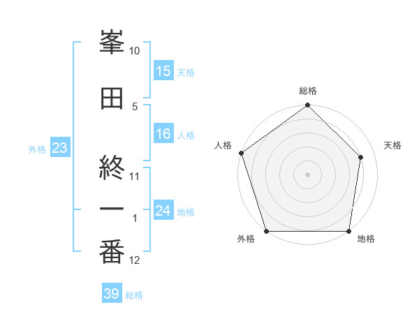 峯田 終一番さんの総格は39画の5点!