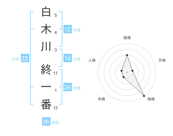 白木川 終一番さんの天格は12画の1点!