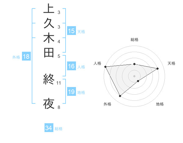 上久木田 終夜さんを姓名の画数から五運を鑑定