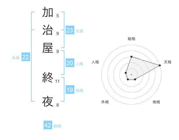 加治屋 終夜さんの総格は42画の3点