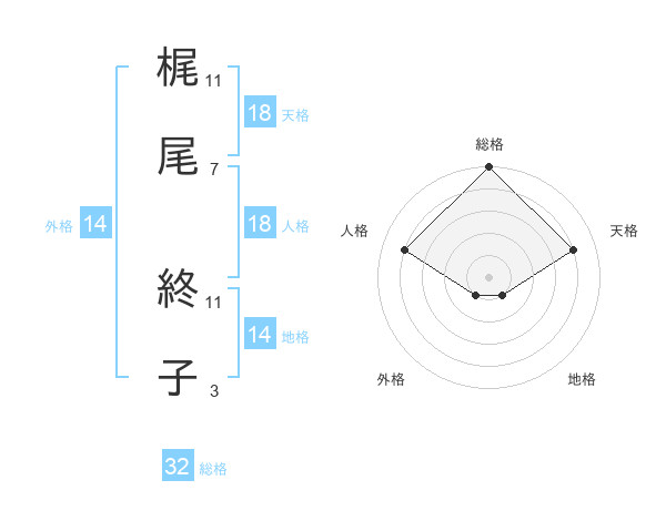 梶尾 終子さんの総格は32画の5点!