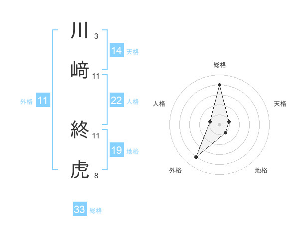 川﨑 終虎さんを姓名の画数から五運を鑑定