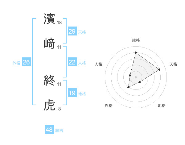 濱﨑 終虎さんを姓名の画数から五運を鑑定