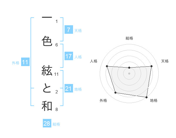 一色 絃と和さんの外格は11画の4点