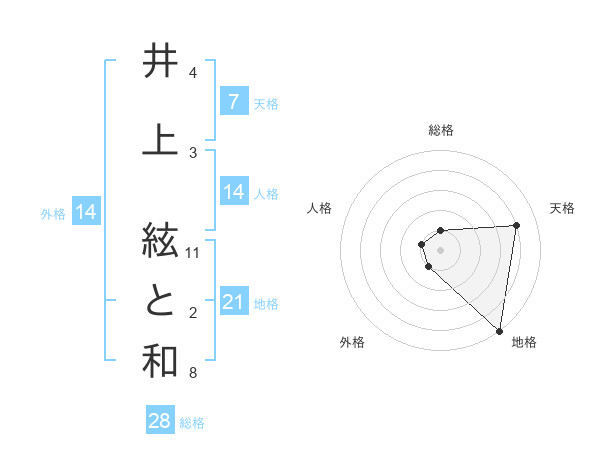 井上 絃と和さんの天格は7画の4点!