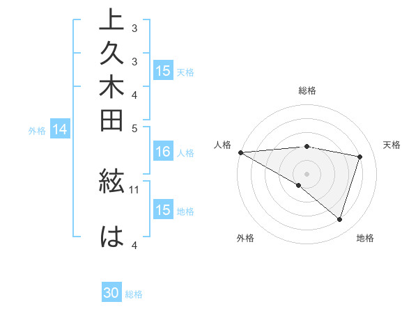 上久木田 絃はさんの地格は15画の4点!
