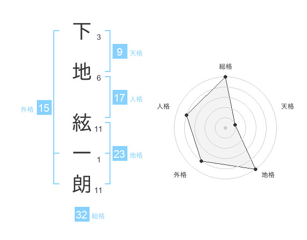 下地 絃一朗さんを姓名の画数から五運を鑑定