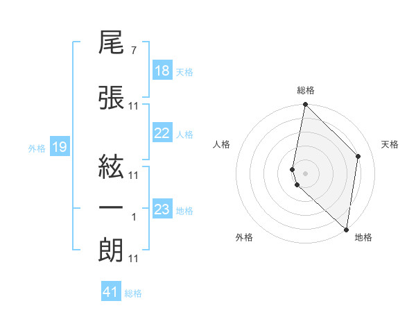 尾張 絃一朗さんの総格は41画の5点!
