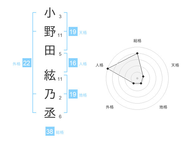 小野田 絃乃丞さんを姓名の画数から五運を鑑定