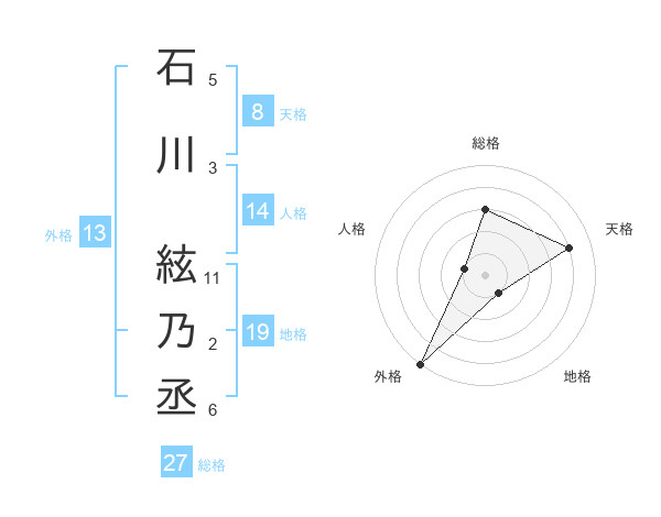 石川 絃乃丞さんを姓名の画数から五運を鑑定