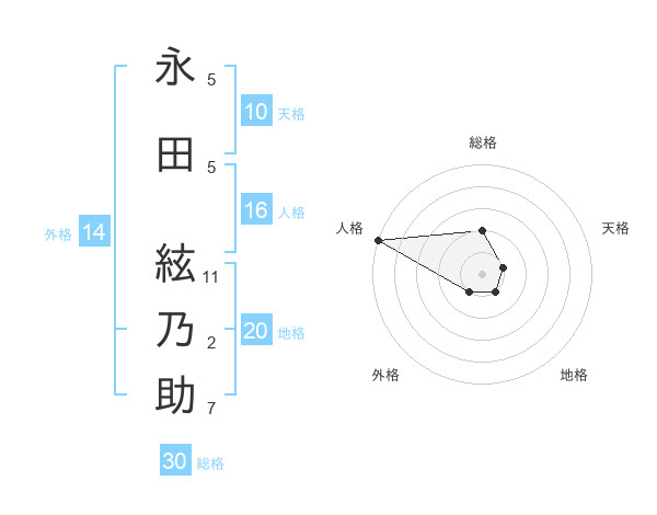 永田 絃乃助さんの総格は30画の2点!