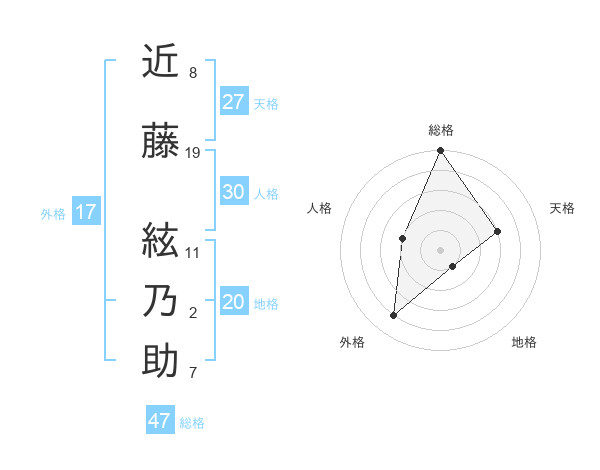 近藤 絃乃助さんを姓名の画数から五運を鑑定