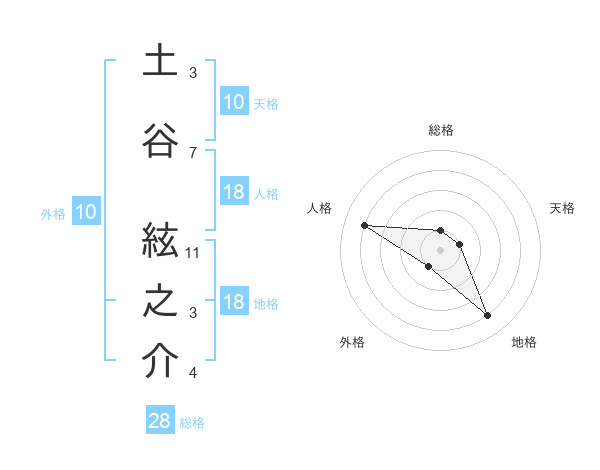 土谷 絃之介さんを姓名の画数から五運を鑑定