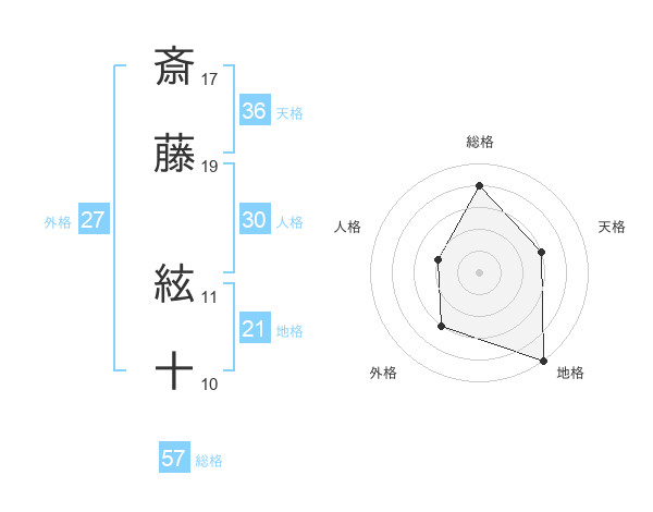 斎藤 絃十さんの総格は57画の4点!
