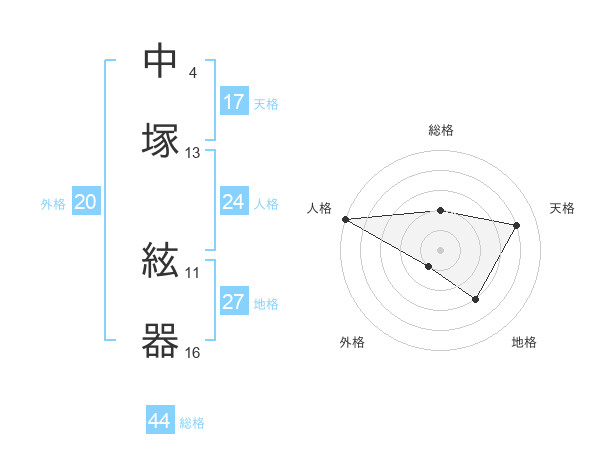 中塚 絃器さんを姓名の画数から五運を鑑定