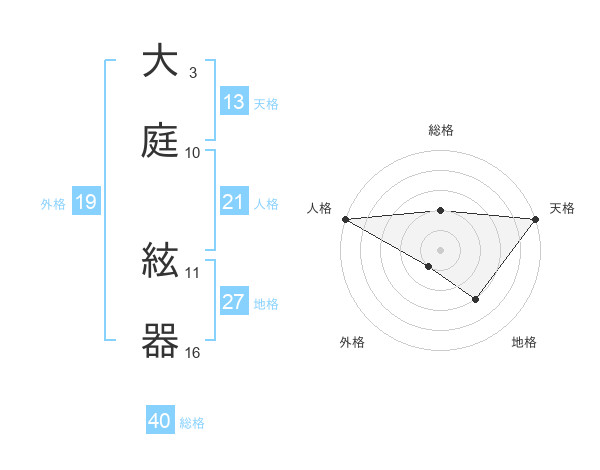 大庭 絃器さんを姓名の画数から五運を鑑定