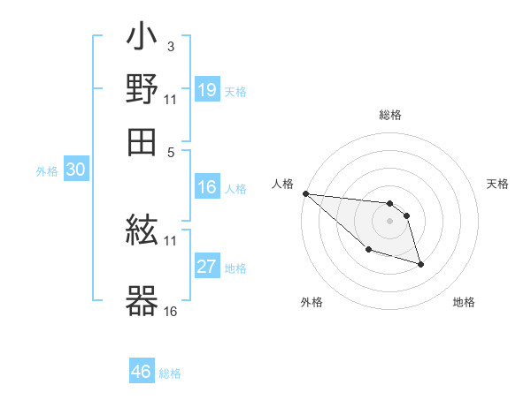 小野田 絃器さんを姓名の画数から五運を鑑定