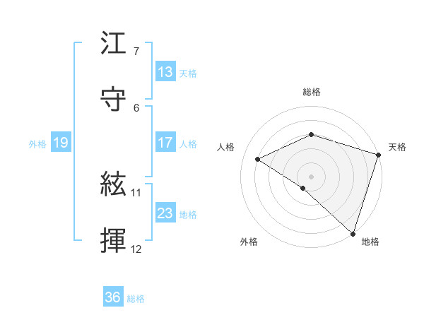 江守 絃揮さんを姓名の画数から五運を鑑定
