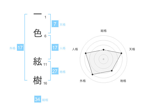 一色 絃樹さんを姓名の画数から五運を鑑定